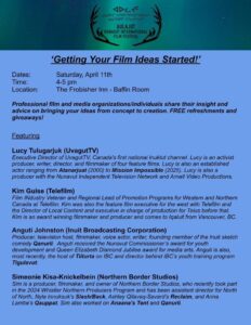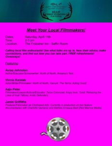 FREE to attend! Panel Discussions ‘Meet Your Local Filmmakers!’ & ‘Getting Your Film Ideas Started!’ Make connections and find out how you can get involved Sat Apr 11th 2pm & 4pm!